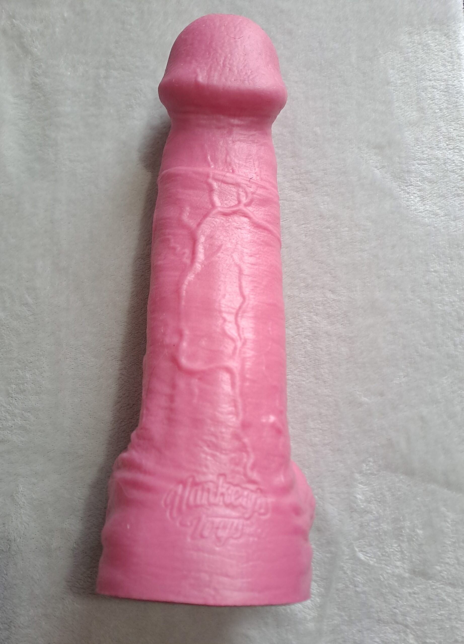 Something regular readers will know about me is that I like my toys bright, colourful, sparkly, in unusual aesthetics, and girly as hell. This is one reason I don’t often gravitate towards strictly realistic dildos. However, one of the things I love about Mr Hankey’s Toys is that all their various designs, from the realistic to the fantastical, can be customised from a range of 24 colours. You’ll understand, then, why I felt compelled to request the Big Pop giant realistic dildo in the brightest shade of pink they have.