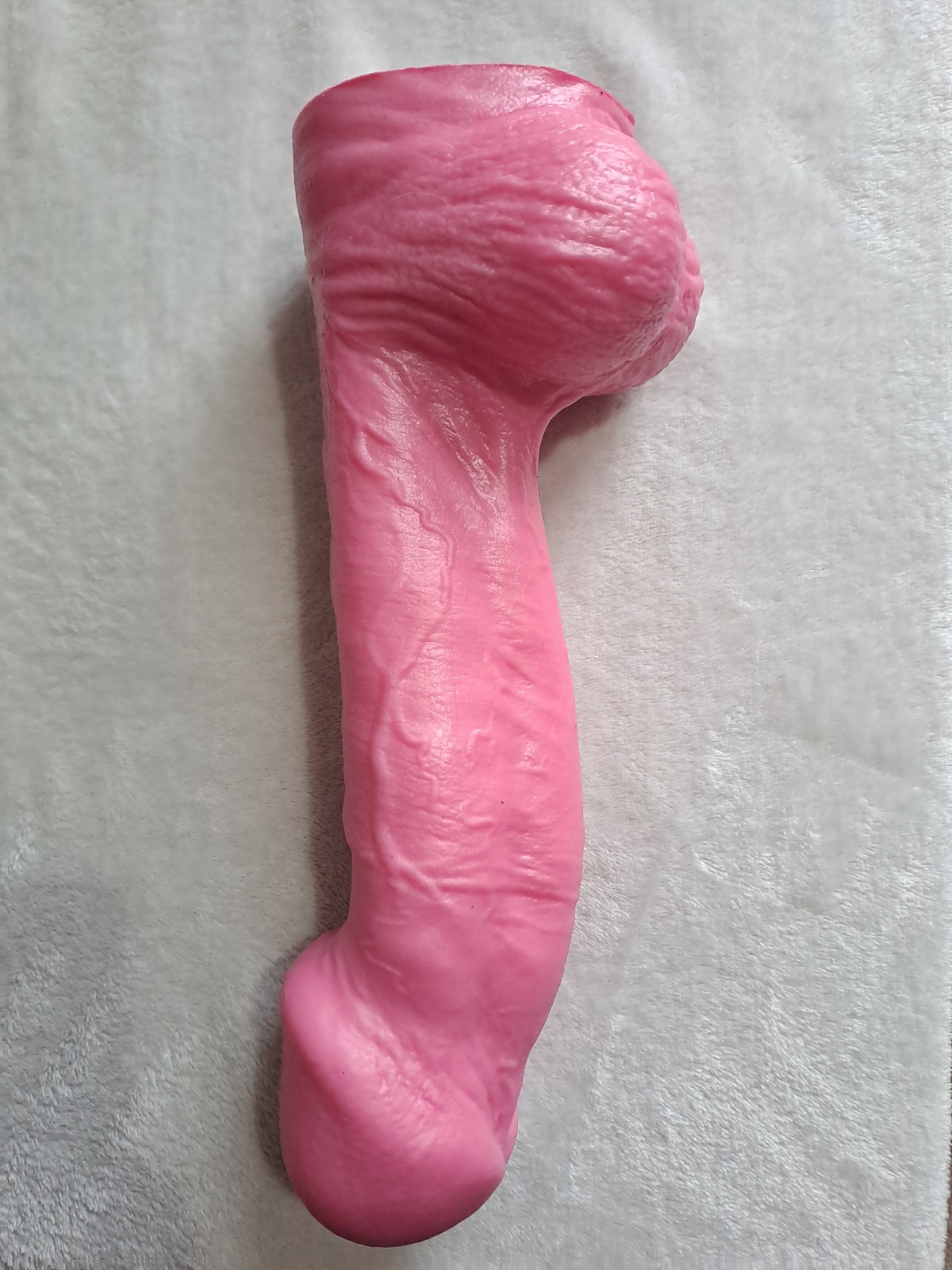 The Big Pop by Mr Hankey’s Toys is a realistic dildo available in four giant sizes. Even the size Small measures 10″ in total length and 2.2″ in diameter at the widest point. The largest size, the 4XL, is 17.25″ in length and 4.29″ in diameter at the widest point. I requested the second size up, which is 12″ in length and has a head diameter of 2.86″.