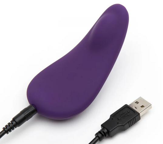 The Tracy’s Dog Swirlii is a wearable rotating vibrator designed to be worn inside your underwear for hands-free pleasure. It features a main insertable shaft which sits inside the vagina and rotates in a circle, a flexible small appendage that vibrates, and an external part with a raised bump that stimulates the clit. This external arm also helps to anchor the toy in place. At first, I wasn’t sure what the little flexible appendage was for or where to put it. Eventually I realised that it is meant to go inside along with the main inserable arm.